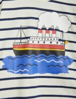 T-shirt with an all-over Ferry print on a stripe with a white base. Made from GOTS-certified organic cotton with stretch for extra comfort. Fit is true so go up a size for a more oversized look.