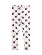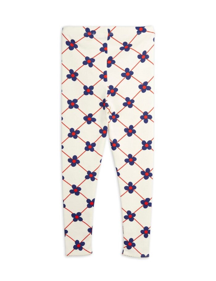 Off white leggings with all over Flower Check print. made from 100 % GOTS-certified organic cotton. The leggings are slightly shorter than normal and designed with a lace elastic detail at the leg ends.