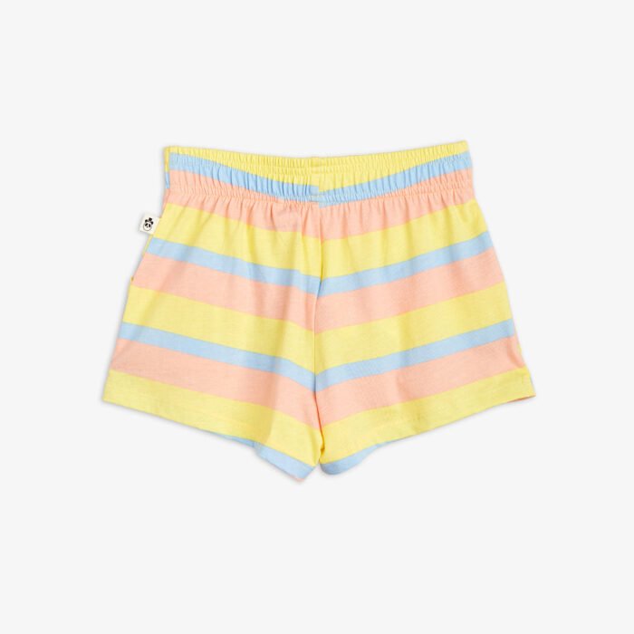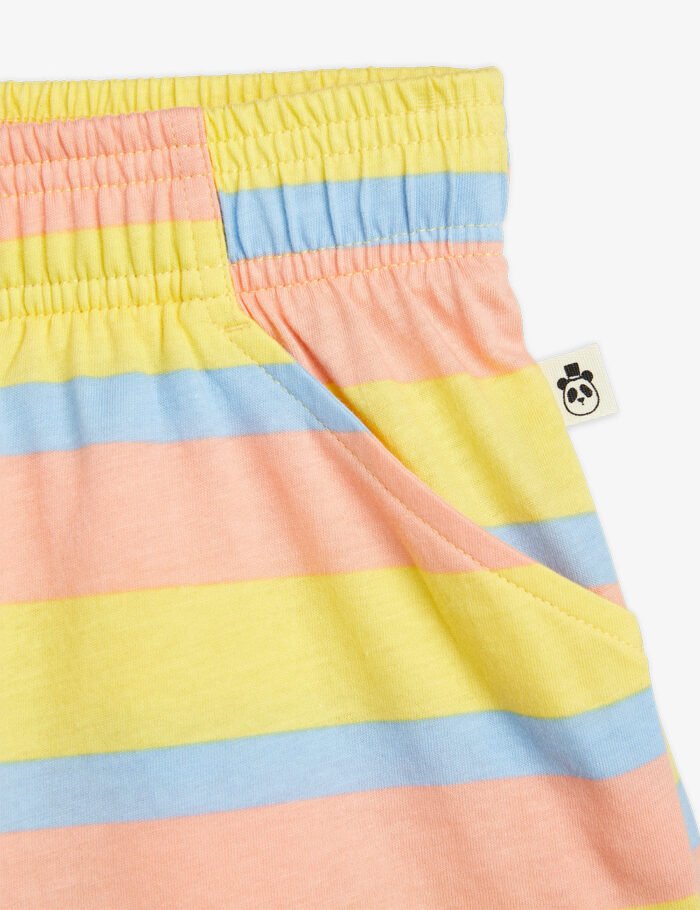 New style! Mini Rodini Pastel stripe shorts with yarn-dyed pastel stripes made in 100 % GOTS-certified organic cotton. The shorts are designed with an elastic high waist with a drawstring on the inside. Match with our stripe top for the full look!