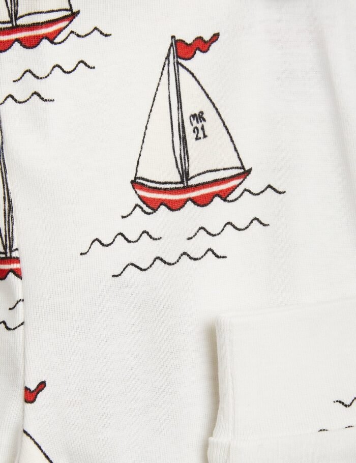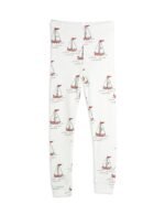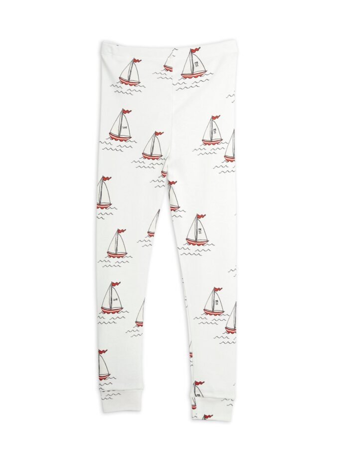 Off white leggings with an all over Sailing Boats print. made from 100 % GOTS-certified organic cotton. The leggings are designed with a soft elastic waistband and have cuffs at the bottom.