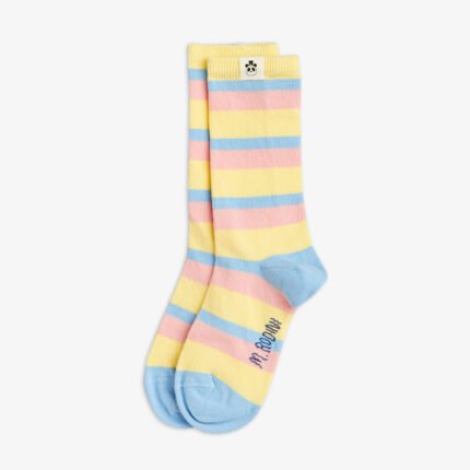 Mini Rodini Unicorn Seahorse aop leggings with all-over printed unicorn seahorse yardage on a striped white base. Made from GOTS-certified organic cotton with stretch for extra comfort.